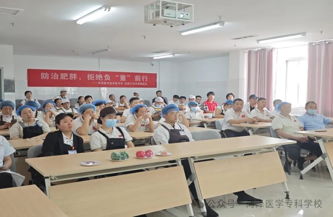 5月14日,菏泽医学专科学校临床医学系轻脂行动志愿服务队依托临床医学专业背景,将专业的营养知识转化为通俗易懂的生活指南,分别面向餐厅职工和本校学生,开展全面生动的肥胖和体重管理专题宣讲活动,为师生健康保驾护航。