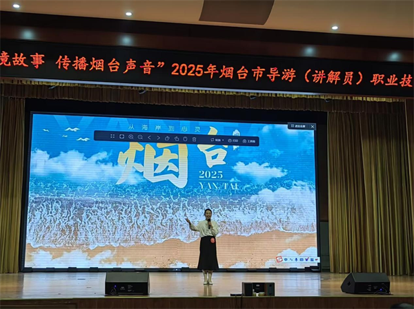 本次竞赛涵盖景点讲解、才艺展示、主题演讲三大核心环节。在景点讲解环节,李美麒以生动流畅的语言和饱满的情感,将蓬莱阁的仙境故事娓娓道来;才艺展示环节,她带来的评书表演极具感染力,赢得现场观众阵阵热烈掌声;主题演讲中,她紧扣“我是烟台文旅推介官”主题,以新颖的观点和流畅的表达,充分展现了扎实的专业素养和对导游职业的深刻理解。备赛期间,在指导老师的精心指导下,李美麒反复打磨每一个细节,通过无数次练习不断突破自我。