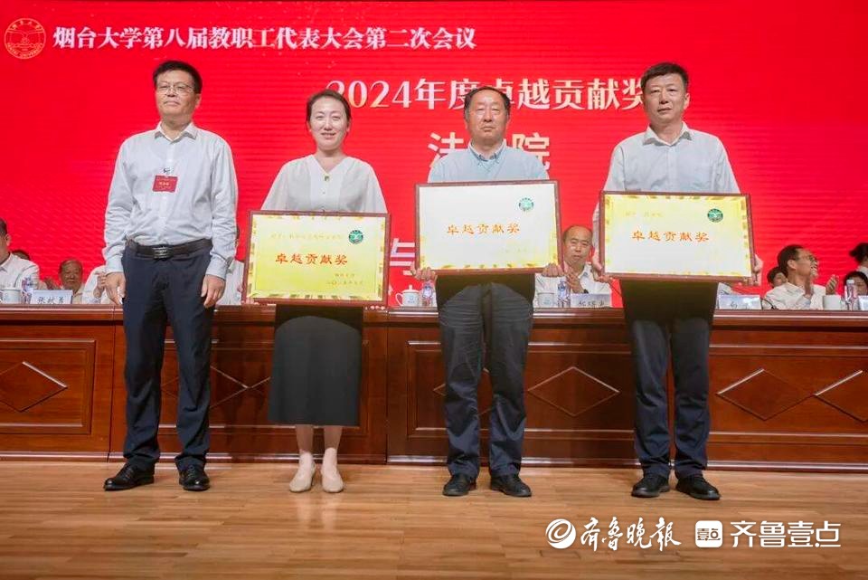 从烟台大学了解到,近日,为树立典型、表彰先进,该校根据《烟台大学“卓越贡献奖”实施办法(试行)》,在集体申报、职能部门初审的基础上,经评选工作领导小组会议表决、党委常委会研究决定,授予法学院、药学院、数学与信息科学学院2024年度“卓越贡献奖”荣誉称号,并在7月11日举行的烟台大学第八届教职工代表大会、第九届工会会员代表大会第二次会议上隆重表彰,烟大党委书记卢国强为获奖单位颁奖。