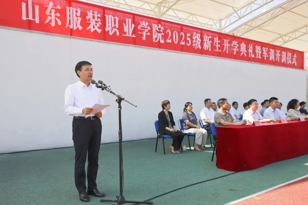金秋时节的泰山脚下,旌旗猎猎,青春昂扬。9月9日上午,山东服装职业学院举行2025级新生开学典礼暨军训开训仪式。学院党委书记郝燕,学院党委副书记、院长马培安,学院党委领导班子成员,泰山区人民武装部部长王艳坤,学院各系部负责人,承训教官及全体新生共同见证新征程启航。学院党委副书记韩西德主持典礼。