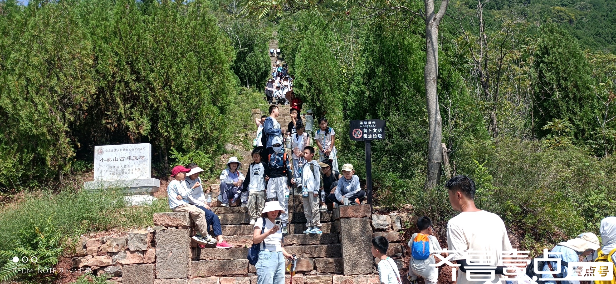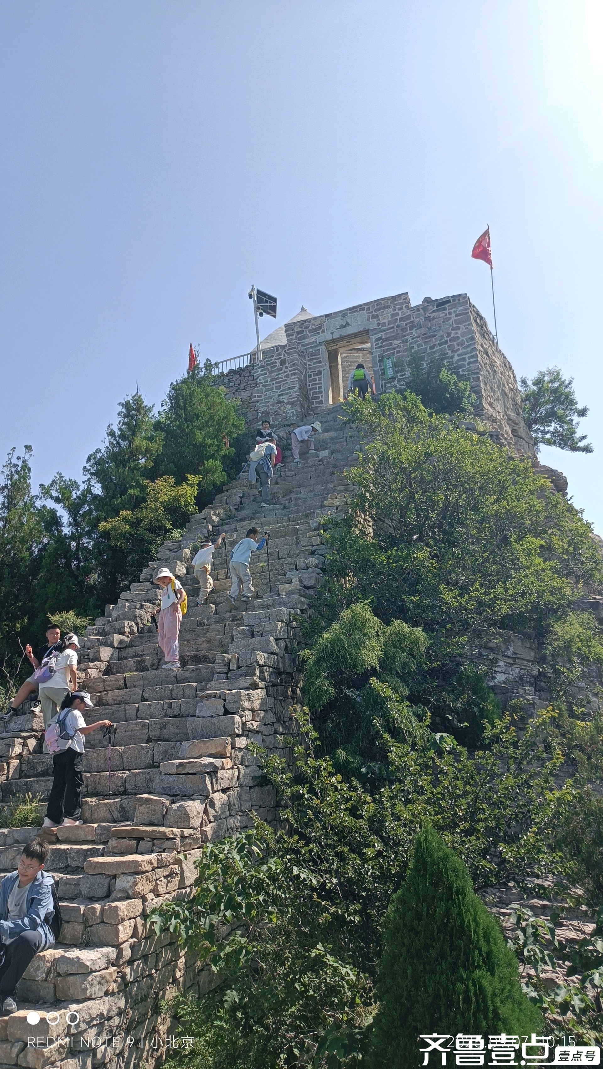 今日天公作美,难得的秋高气爽,蓝天白云格外让人兴奋。当然这是一年四季中最好的时候,自然吸引不少爬山爱好者。上午泰安地区就来两辆大客车,多是一家三口集体出游,漫山遍野都是他们的身影。有个家长说:“来了后我们都成了孩子们累赘”。可不是嘛?孩子们自己玩得就挺嗨的,根本不用大人看管。