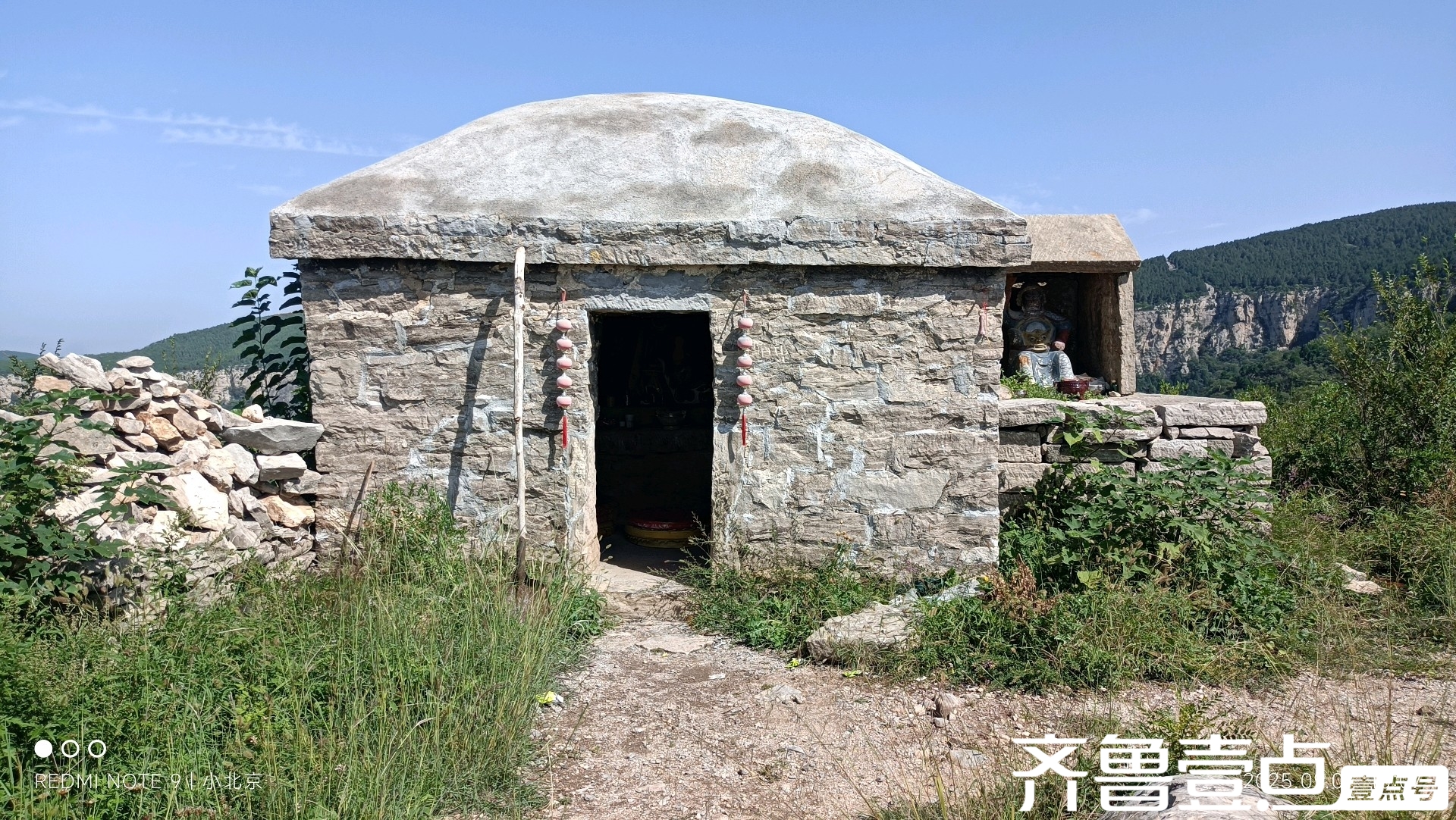 半山腰有一座灵官庙和山神庙紧挨在一起,原来是王灵官和山神爷在一起“联合办公”。灵官庙只有一间房那么大,而山神庙最多一米见方。无论从规模还是结构,简直相差甚远,看着就不是一个档次。其实王灵官本名王善(也有说王恶),宋徽宗时期湘阴人,师从萨天师,后成为道教护法神。其形象为赤面三目、金甲红袍,手持金鞭、脚踏风火轮,额间火眼金睛可辨善恶。一般王灵官镇守宫观山门,道家弟子入庙必先参拜,于是就有了“上山不上山,先拜王灵官”的说法。而山神的地位通常只高于土地爷,尤其名山大川的山神可位列高阶神职,但普通小山的山神可能与土地爷平级。诸神等级森严,自然他们“办公室”也就不一个规格。