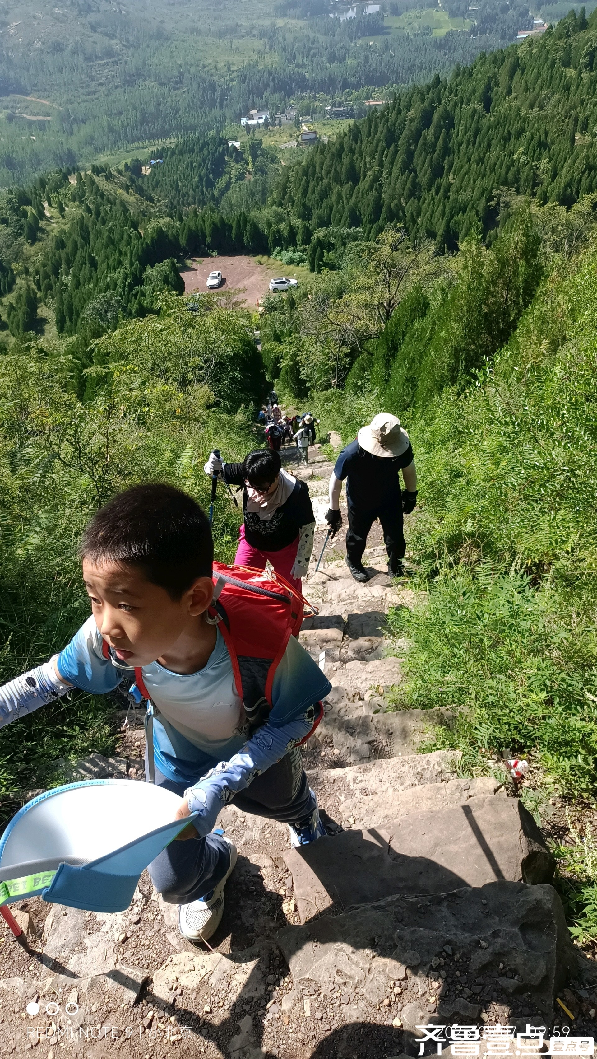 别看我来过两次小泰山,可从来都不记路。只好跟着群主从村边小山包翻山越岭上来,终于在环山道找到了上山的路口。这是上次爬长清馒头山后第三次见到8岁“小五一”。从来都是他爷俩从泰安开车过来爬山,这次还带上了他妈妈。妈妈现在哪是他的对手,早被远远地甩在了身后。都说自古英雄出少年,看来一点不假。