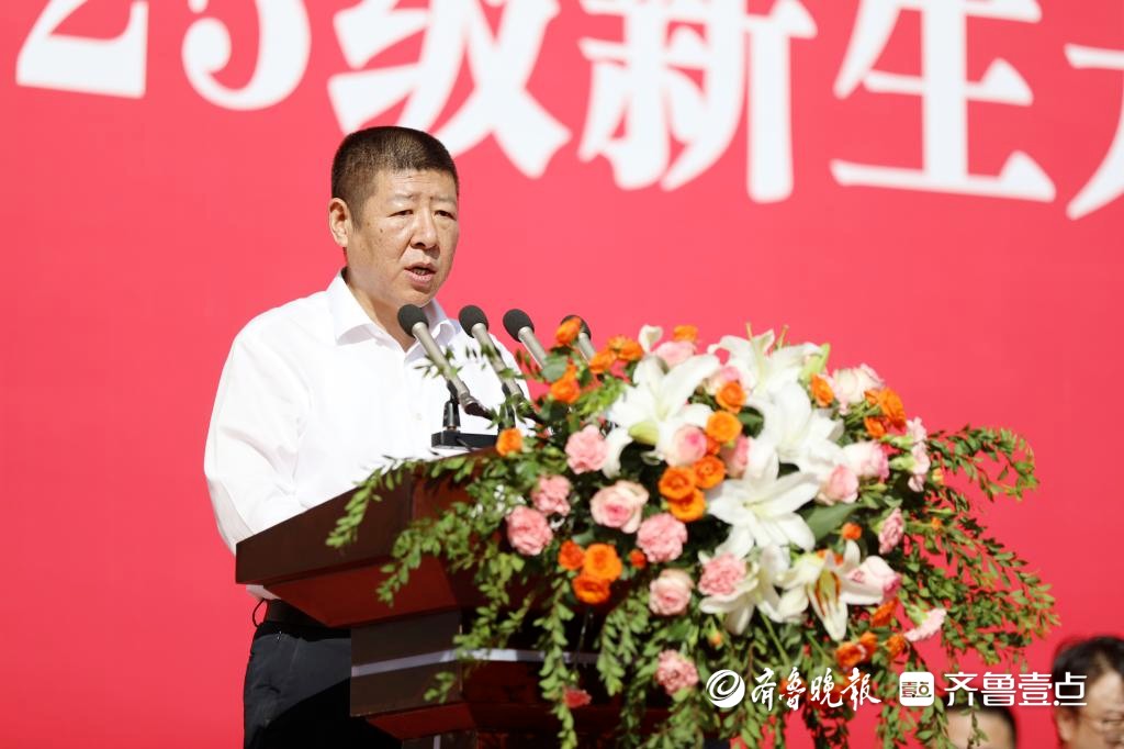 他为典礼当天生日的王维佳等11位同学送上祝福,并邀请李艺涵等18位生日恰逢校庆日的同学,届时与全校师生共同庆生,见证和分享建校40周年的喜悦。他寄语全体新生以“惟平惟准”涵养品格,以“近知近仁”指引行动,在山商这片热土上不懈奋斗,成就无愧于时代、无愧于青春的精彩人生。