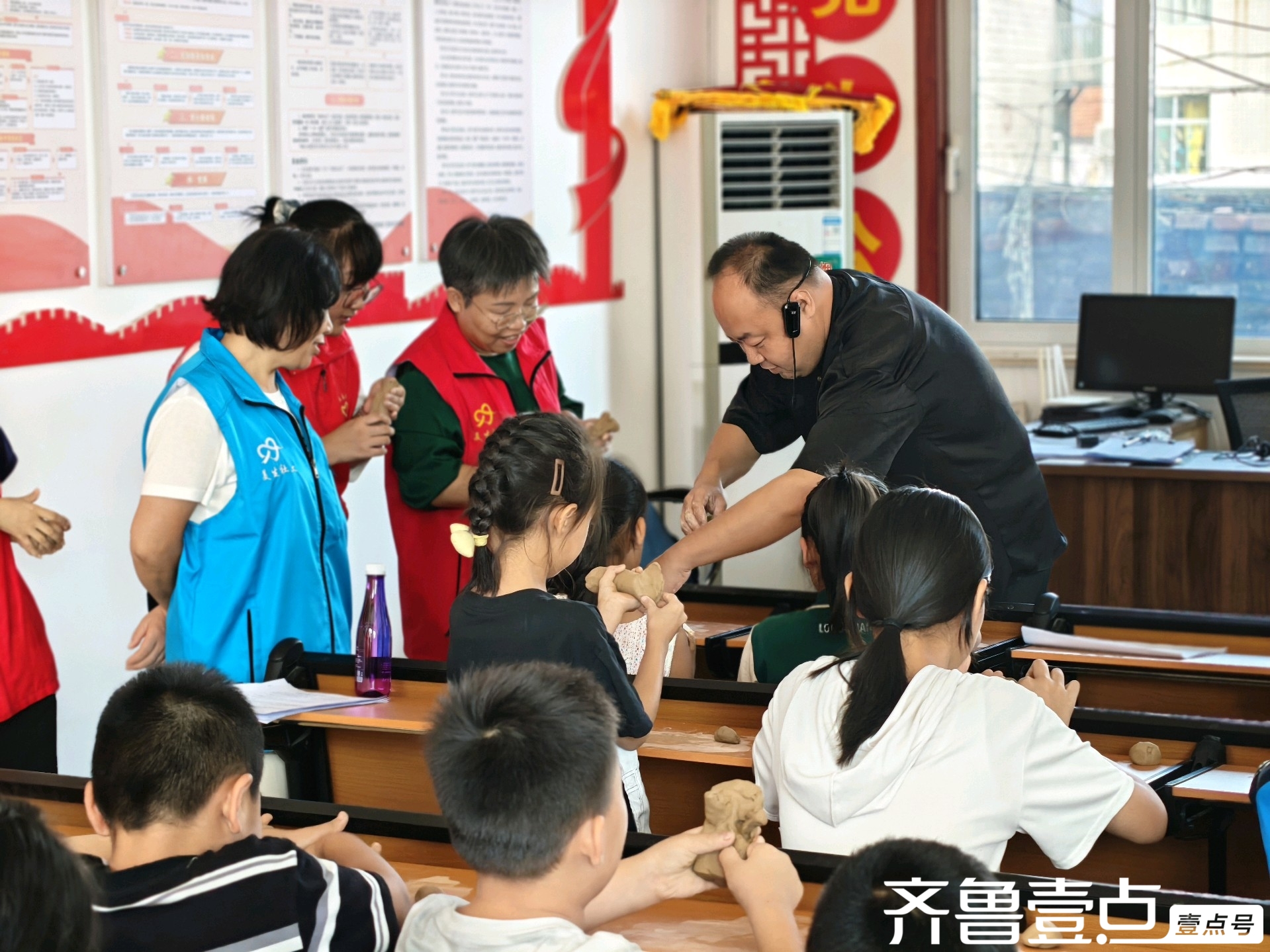 游戏过后,经典诵读环节拉开帷幕。志愿者们化身主持者,手持古诗词,孩子们主动举手出列,以稚嫩的嗓音诵读《静夜思》《春晓》《悯农》等,朗朗书声飘荡在乡村上空,传统文化的韵律如春雨般浸润童心。诵读结束后,志愿者与孩童共同通过图文课件、实物图片,了解龙口黑陶的千年历史:从“薄如纸、亮如漆、声如磬”的独特工艺,到原料采集、拉坯塑形、高温烧制的完整流程,一个个生动案例、一组组直观画面,让孩子们眼中满是好奇,对这门传统技艺的兴趣悄然萌芽。