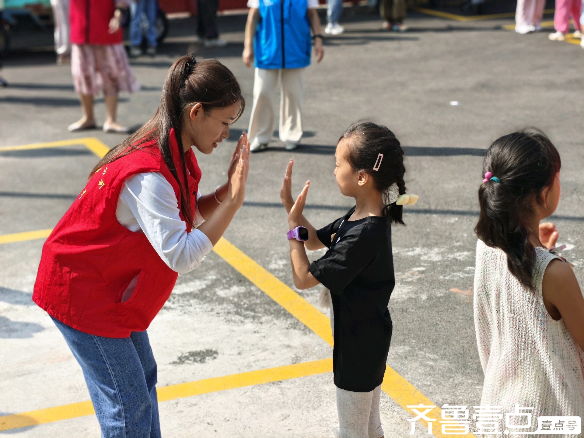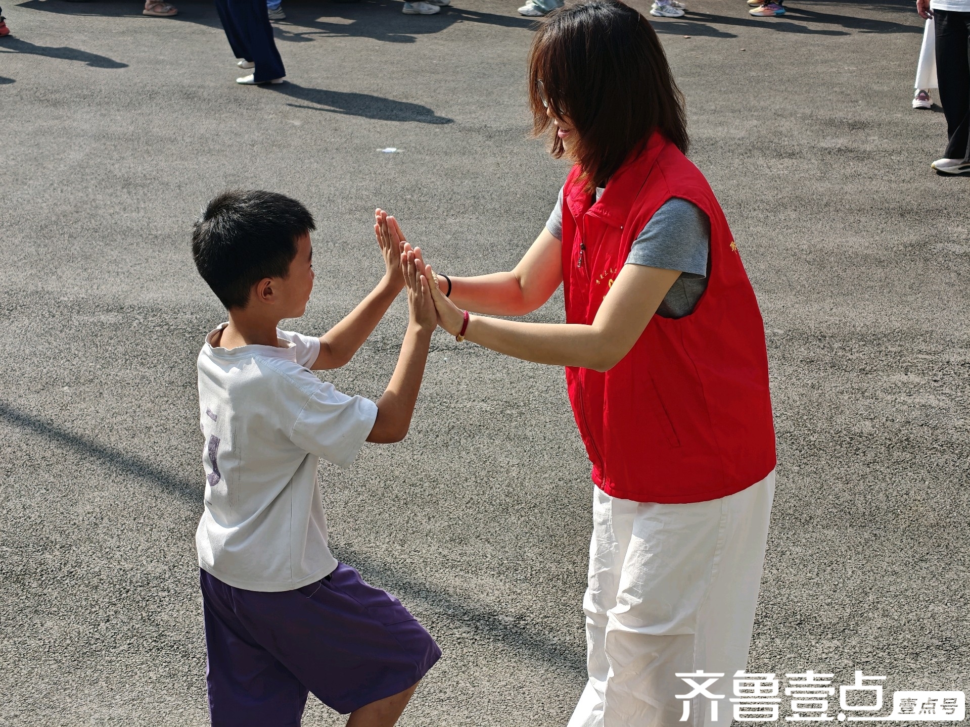 调研结束后,志愿者们与孩子们进行了趣味优秀互动,他们两两一组,跟着音乐的鼓点击掌,简单的拍手热身运动,清脆的笑声在庭院里交织,原本略带陌生的距离感,在互动中悄然消散,只剩下满院的热闹与欢乐。