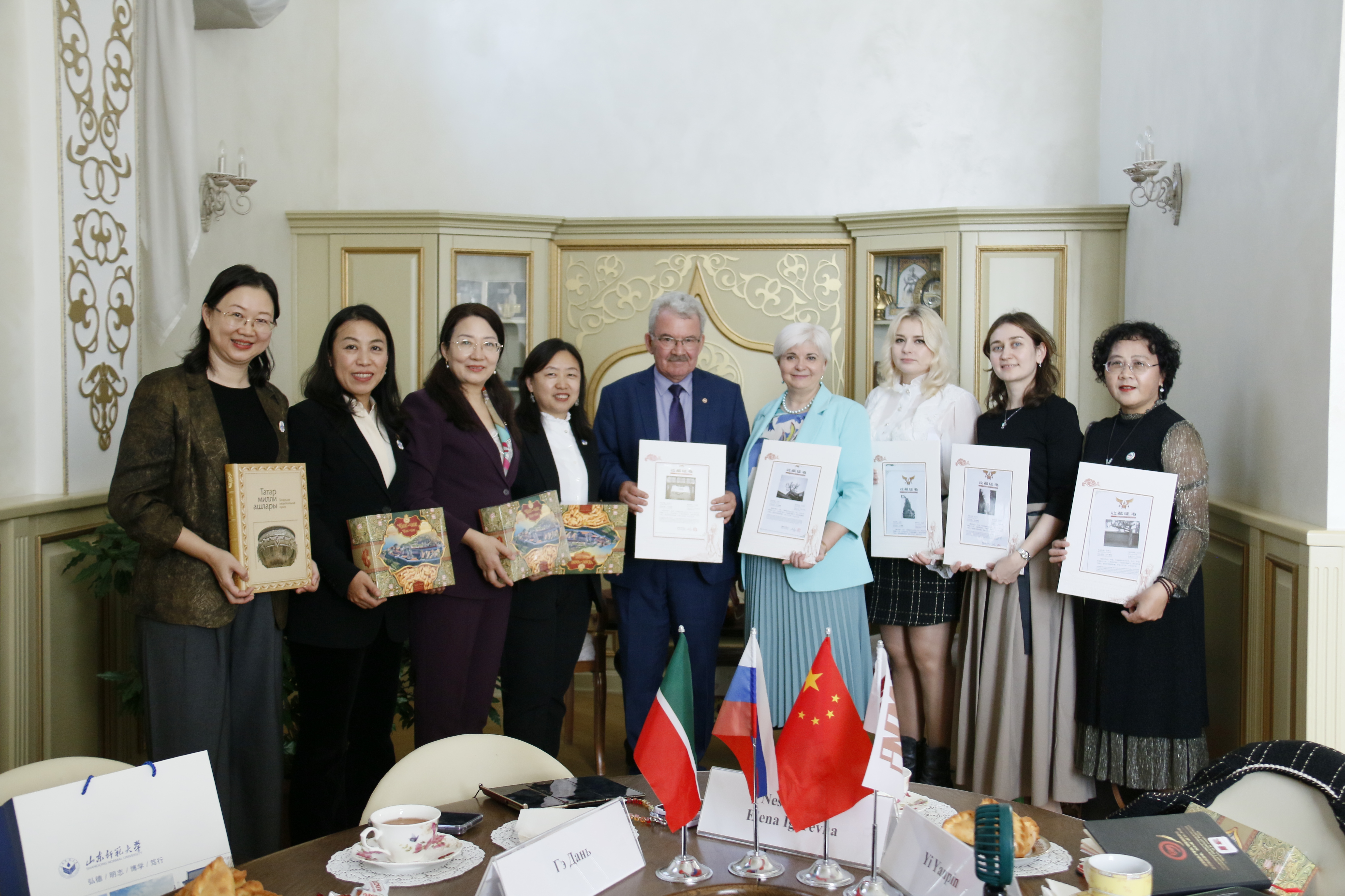 会见中,双方围绕中俄教育文化交流与合作展开交流。山东师范大学巡讲团代表介绍,学校扎根齐鲁大地,以“弘德明志、博学笃行”为校训,今年恰逢建校75周年,已在全球8个国家合作建设孔子学院,长期致力于国际中文教育与文明互鉴。喀山联邦大学国际关系、历史与东方学学院负责人则分享了该院在东方学及在中俄文化交流领域的经验做法,并对巡讲团的到来表示热烈欢迎,期待以后能有更多的机会加强两校合作及文化交流。