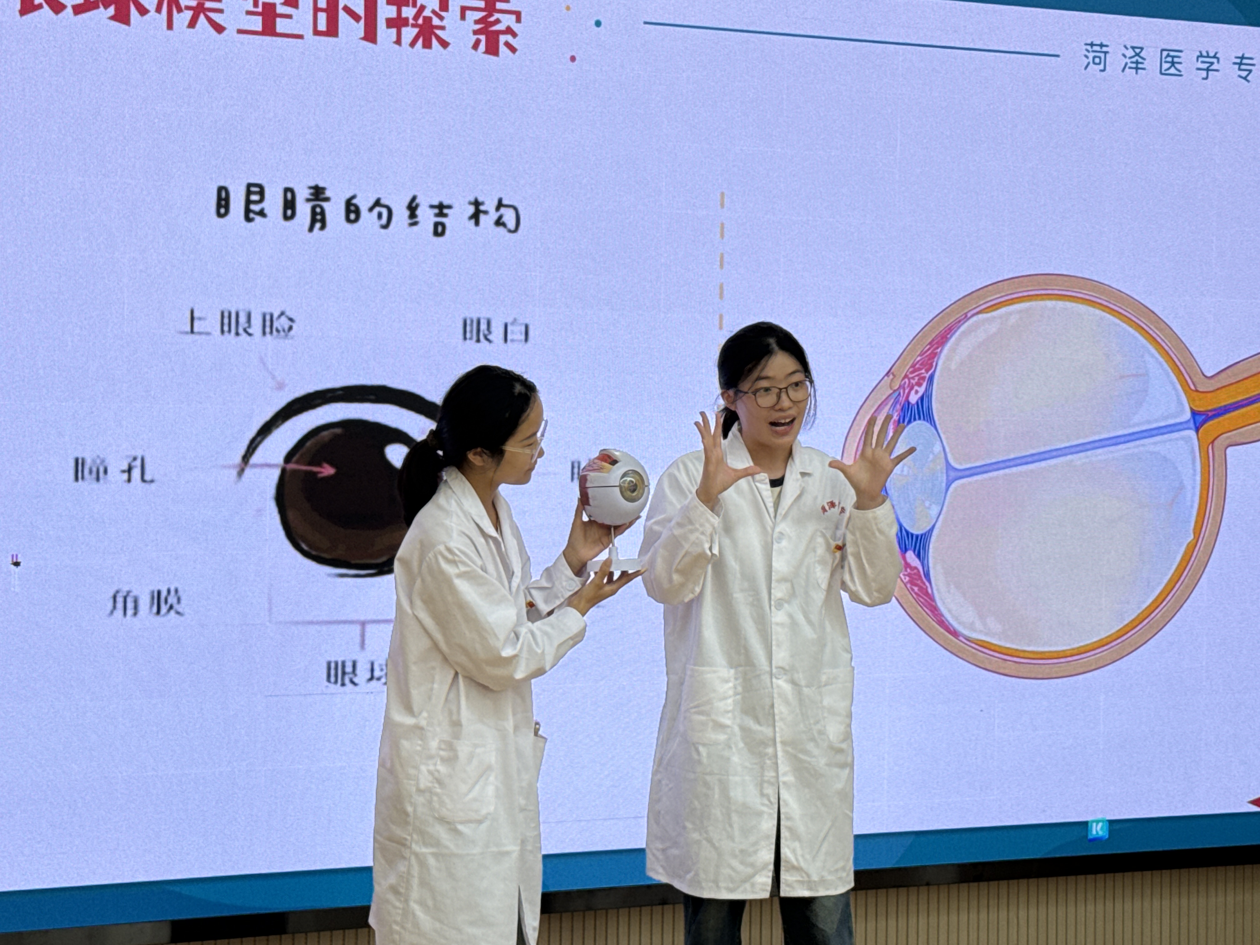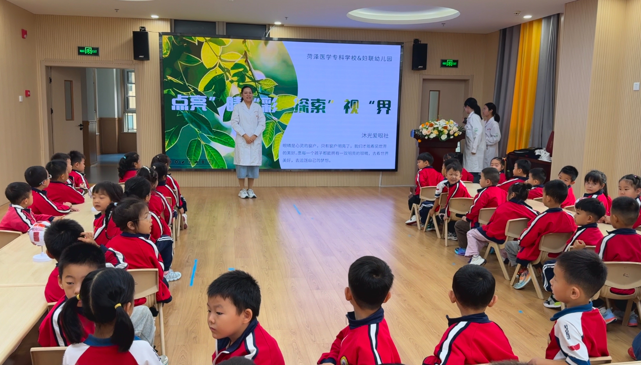 2025年9月迎来全国第11个全国近视防控宣传教育月,今年主题聚焦“保护儿童远视储备量,预防和减少近视发生”。为积极响应教育部关于把幼儿园作为近视防控“第一道关口”的号召,发挥专业优势,增强幼儿爱眼护眼意识,引导其养成科学用眼习惯,9月26日上午,菏泽医专医学技术系眼视光技术专业教师与沐光爱眼社的学生志愿者走进菏泽市妇联幼儿园,开展“点亮‘睛’彩,探索‘视’界”近视防控主题宣教活动,以科学专业的方式守护幼儿视力健康。