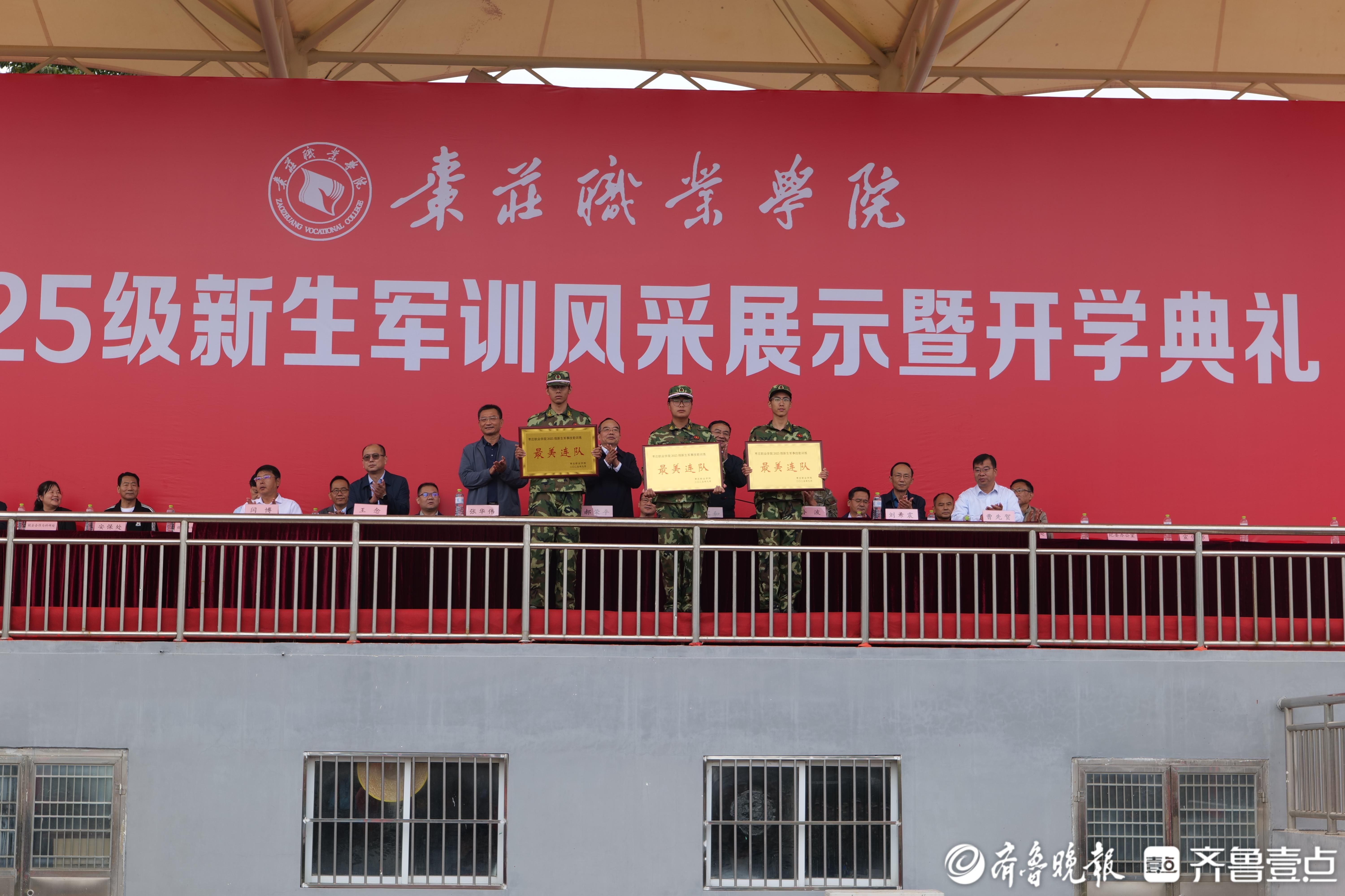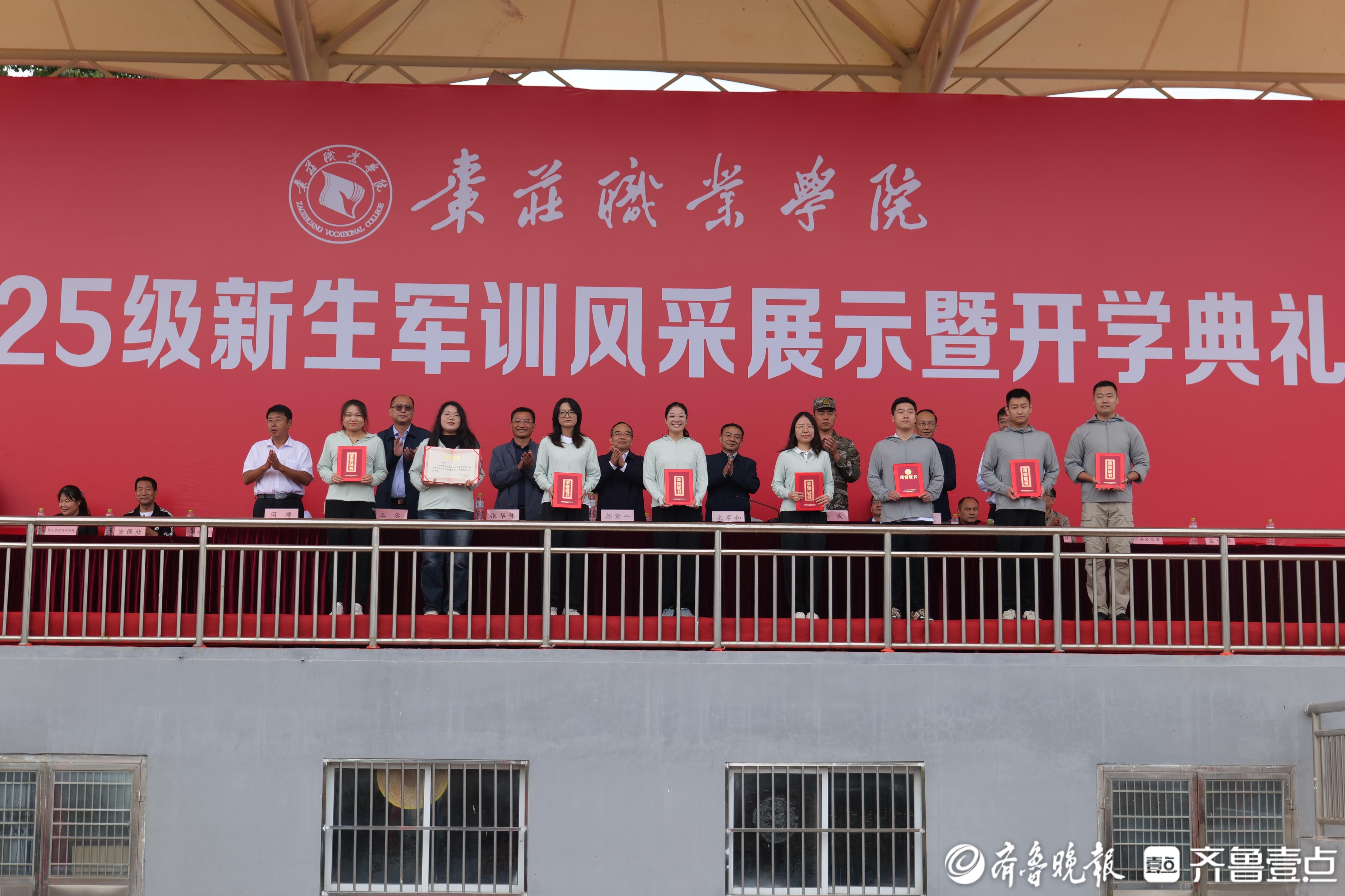 9月24日上午,枣庄职业学院在田径场举行2025级新生军训风采展示暨开学典礼。学院党委书记郝荣平,武警枣庄支队少校参谋孙波出席活动。学院党委副书记、院长梁家和主持活动。学院领导张华伟、王念、刘希震、闫博、曹先贺,各系(院)、部门主要负责同志,全体参训教官、2025级新生及辅导员参加活动。
