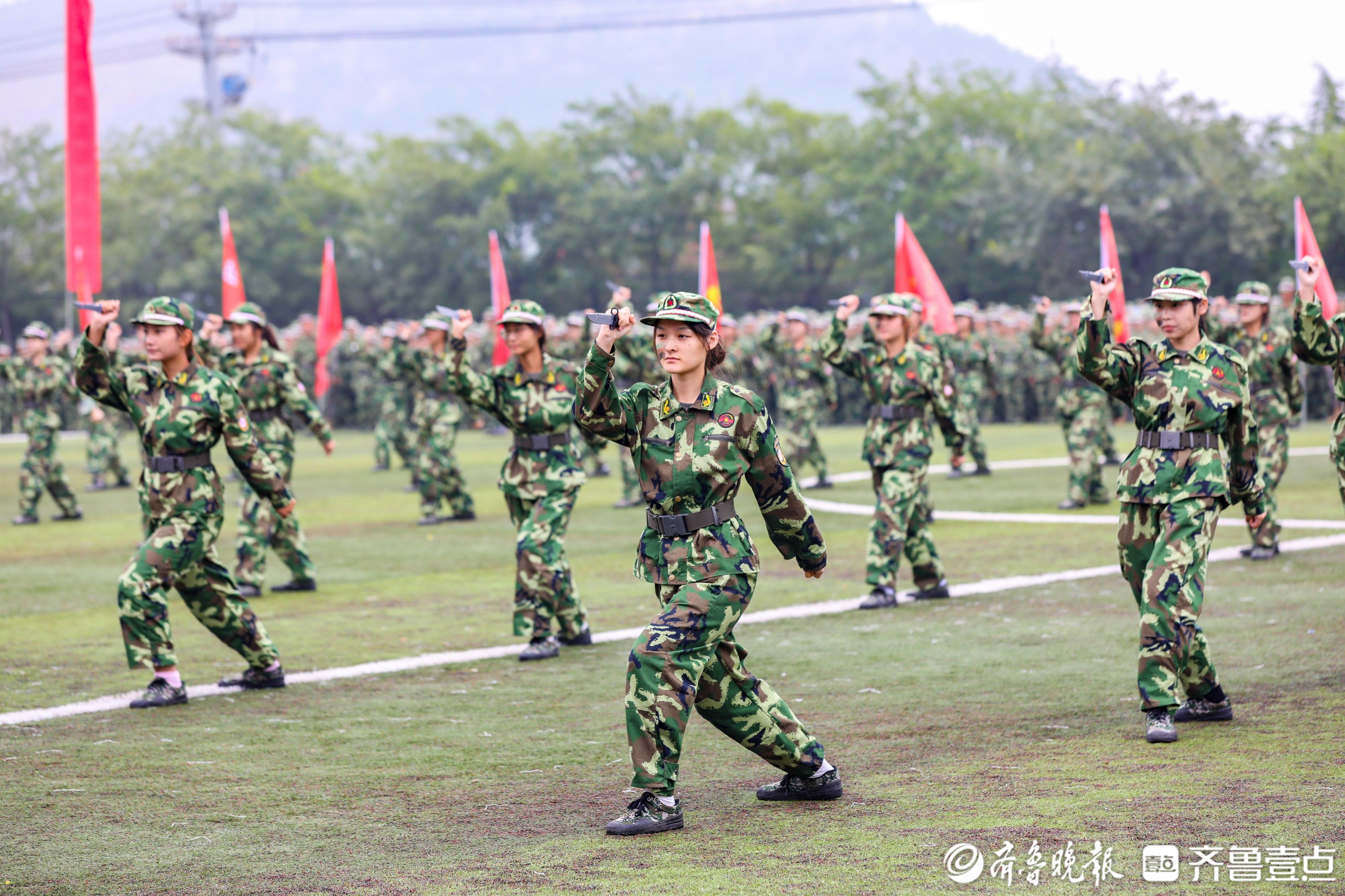 22个新生连队依次以整齐的步伐、嘹亮的口号阔步走过主席台,展现出军训锤炼出的昂扬斗志与严明纪律;擒敌拳方阵出拳刚劲有力,一招一式尽显青春锐气;应急棍方阵动作整齐划一,尽显团结协作精神;匕首术方阵身姿矫健,展现出新时代青年的飒爽英姿;战术表演中,新生们模拟实战场景,战术动作标准娴熟,赢得现场阵阵掌声。整场展示充分彰显了2025级新生过硬的军事素养与顽强的意志品质,是刻苦训练成果的生动呈现。