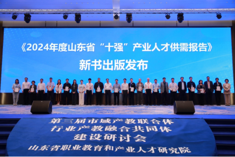 会上开展了《2024年度山东省“十强”产业人才供需报告》新书出版发布活动。该书是国内首次出版发行的关于山东省“十强”产业人才供需相关研究的书籍,该书由山东省职业教育和产业人才研究院组织编写,以山东省产教融合供需信息平台为数据来源,汇集了14所职业院校专家学者力量,遴选出新一代信息技术、高端装备、新能源新材料、现代海洋、医养健康等十大优势产业,构建了山东省“十强”产业链全景图谱,建立了人才需求预测模型,剖析了“十强”产业领域的人才结构、缺口类型及培养方向,对于推动山东省“十强”产业高质量发展和职业院校人才培养具有重要意义。
