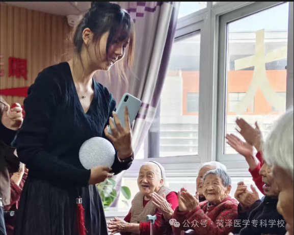 近日,菏泽医专医学技术系燎原志愿者服务队走进附属医院养护中心,开展“医心护老·科普护航”主题活动,为现场老年患者及家属送去关怀与温暖。