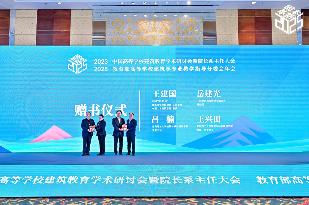 开幕式赠书仪式上,王建国院士、中国建筑出版传媒有限公司总经理岳建光向学校建筑与城乡规划学院捐赠了近500种专业图书。岳建光介绍了中国建筑出版传媒有限公司的基本情况,并表示将继续加强与高校合作,推动优秀教材建设,为建筑教育的高质量发展做出新的更大贡献。