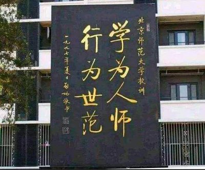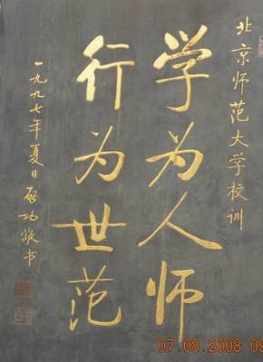 “学为人师,行为世范"是出自著名教育家、古典文献专家、书法家启功教授的深思感悟,并由他亲自题写,之后“学为人师,行为世范”成为北京师范大学的校训。