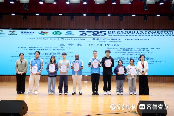 11月2—6日,2025年金砖国家职业技能大赛数据分析与可视化赛项中国赛区国际总决赛在广东建设职业技术学院清远校区举办。由枣庄职业学院经济与信息技术系教师关静指导的刘浩宇同学,在137支中外参赛队的激烈角逐中表现亮眼,最终斩获三等奖。