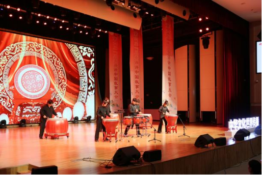 山东大学学生带来鼓乐表演《龙腾虎跃》和诵读节目《乐学明理,继往开来》。
