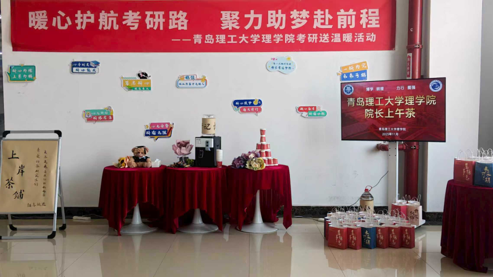 “今年的‘上岸茶铺’不仅有热气腾腾的奶茶,还有考研冲刺‘大数据干果’,每天既有‘小惊喜’,也有‘新知识’,真是暖心又提气!”在青岛理工大学理学院自习室门口,正处于考研冲刺期的22级学生宋利祥手捧“上岸茶”说。