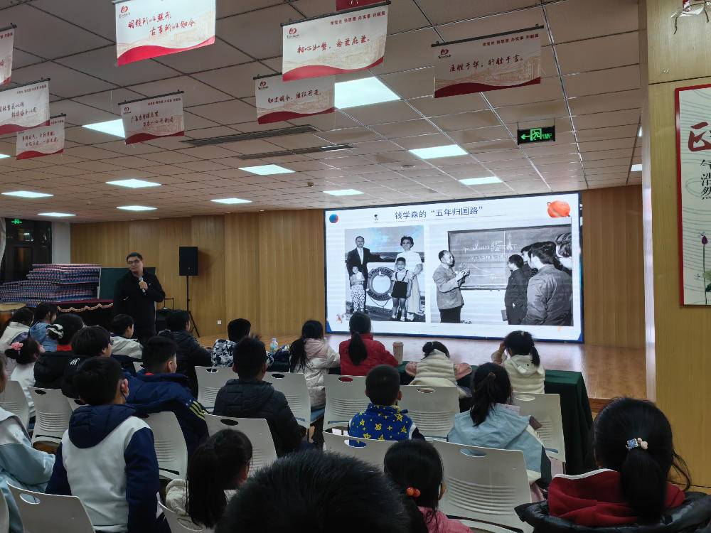 “同学们,你们知道吗?中国天眼FAST的反射面面积相当于30个足球场,而它的‘眼镜片’误差不超过一根头发丝的粗细……”活动现场,马克思主义学院安晓辉老师以航空航天中的科学家精神为切入点,将思政元素融入星河故事,在带领孩子们用激光笔“指点星空”的同时以中国航天事业发展历程为线,讲解中国航天故事,启发同学们感悟载人航天精神、科学家精神。