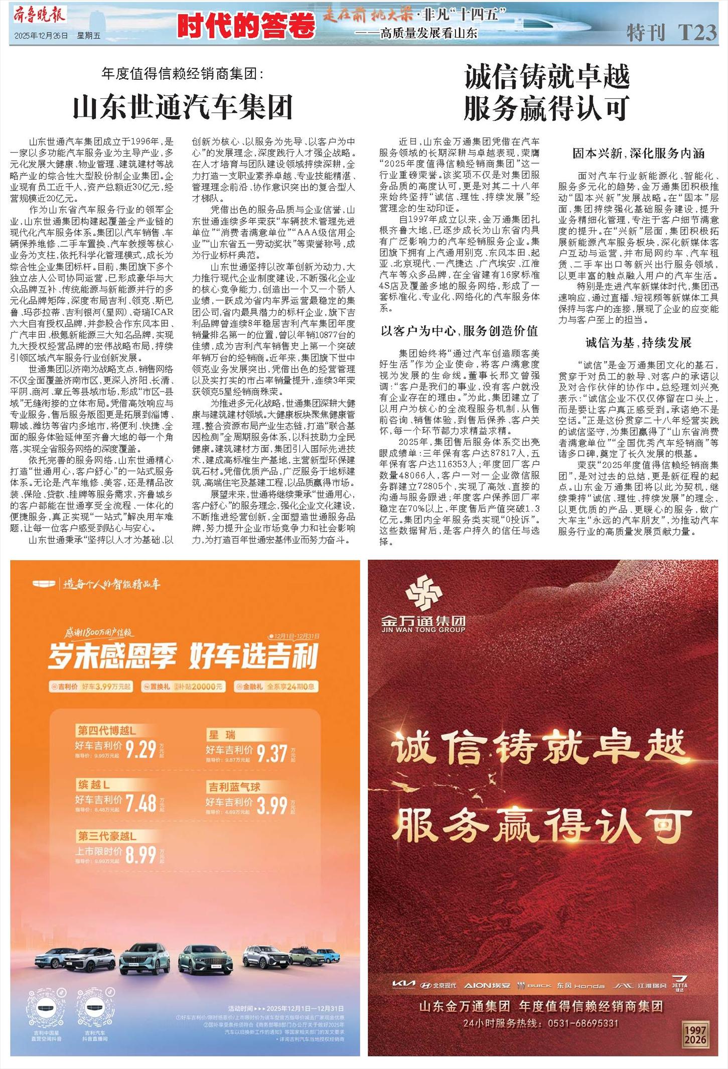 作为山东省汽车服务行业的领军企业,山东世通集团构建起覆盖全产业链的现代化汽车服务体系。集团以汽车销售、车辆保养维修、二手车置换、汽车救援等核心业务为支柱,依托科学化管理模式,成长为综合性企业集团标杆。目前,集团旗下多个独立法人公司协同运营,已形成豪华与大众品牌互补、传统能源与新能源并行的多元化品牌矩阵,深度布局吉利、领克、斯巴鲁、玛莎拉蒂、吉利银河(星网)、奇瑞ICAR六大自有授权品牌,并参股合作东风本田、广汽丰田、极氪新能源三大知名品牌,实现九大授权经营品牌的宏伟战略布局,持续引领区域汽车服务行业创新发展。