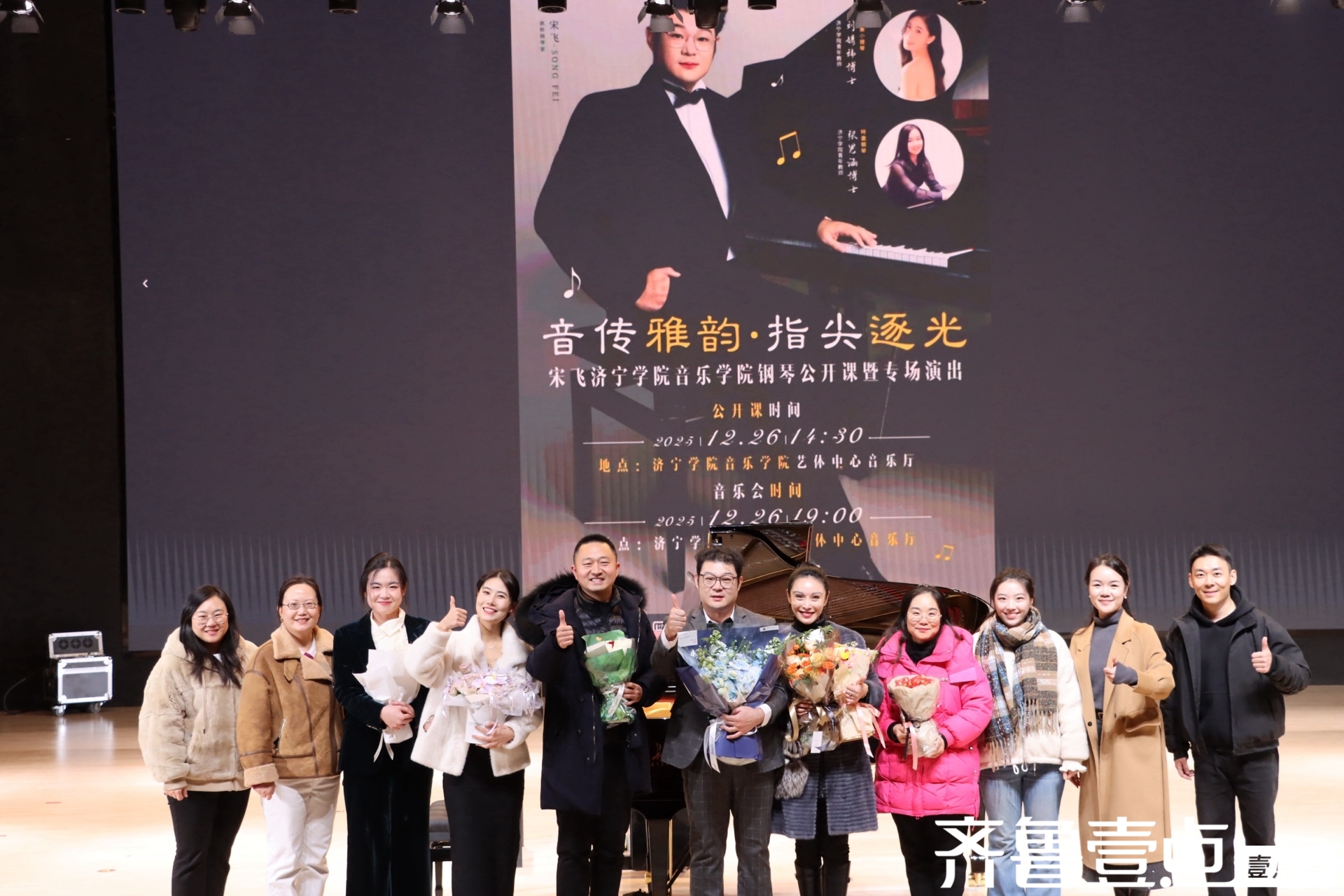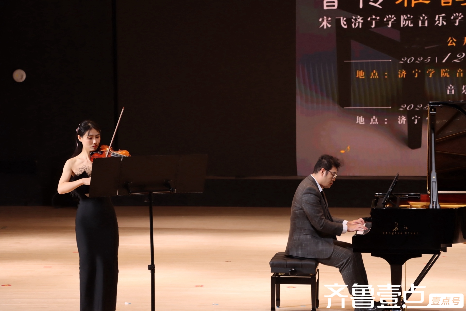冬日暖阳沐学府,琴音雅韵润心田。12月26日,一场兼具专业深度与艺术感染力的钢琴盛宴在济宁学院音乐学院艺体中心奏响。旅欧钢琴家、山东外事职业大学国际钢琴艺术中心主任宋飞教授,携济宁学院音乐学院两名优秀青年教师俄罗斯小提琴博士刘婧祎、美国钢琴博士张思涵联袂登台,以「音传雅韵,指尖逐光」为主题的钢琴公开课暨专场演出圆满举办。本场活动分为14:30钢琴公开课与19:00专场音乐会两个环节,济宁学院音乐学院师生齐聚现场聆听品鉴,乐声悠扬,掌声不绝,为冬日的校园镌刻下浓墨重彩的艺术印记。
