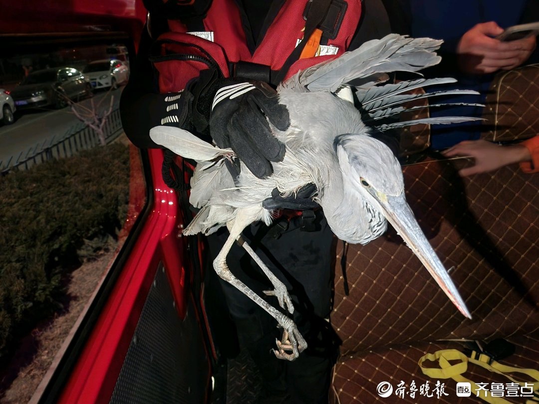 消防救援人员抵达现场后发现,被困动物是国家“三有”保护动物苍鹭。这只苍鹭因受伤无法飞行,被困在距岸边约15米的冰面处。