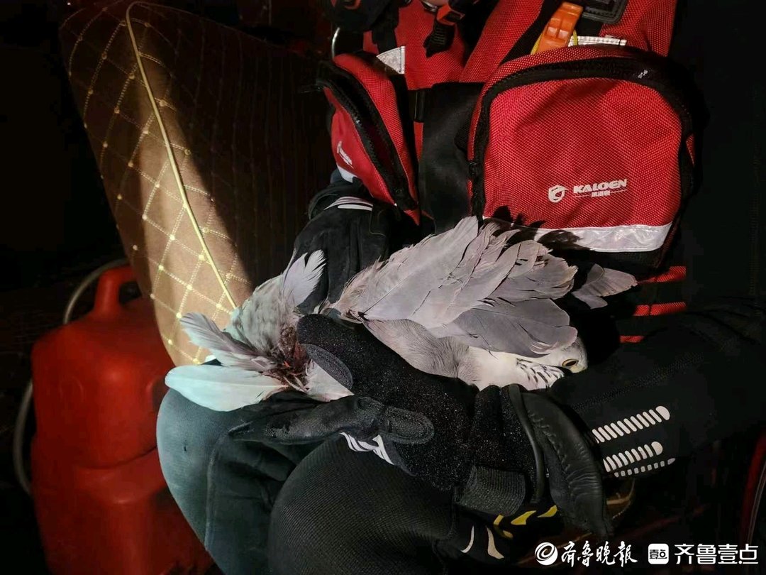 2026年1月20日下午,聊城市高唐县南湖,一市民拨打119报警:在湖面上,一只疑似国家保护动物的大鸟受伤,被冻在湖中冰面上,处境危险。接到求助后,聊城消防官道街消防救援站立即赶赴现场处置。