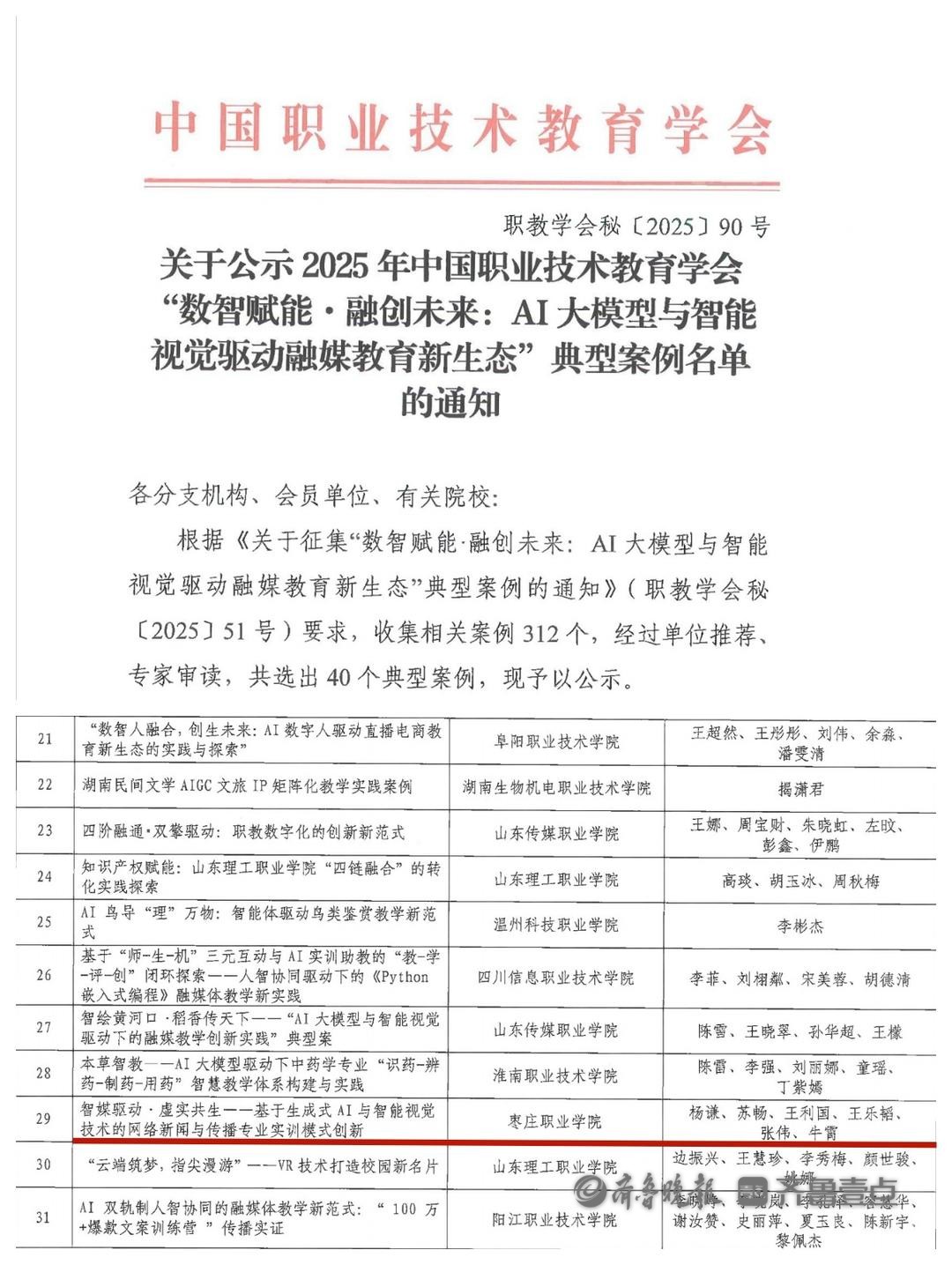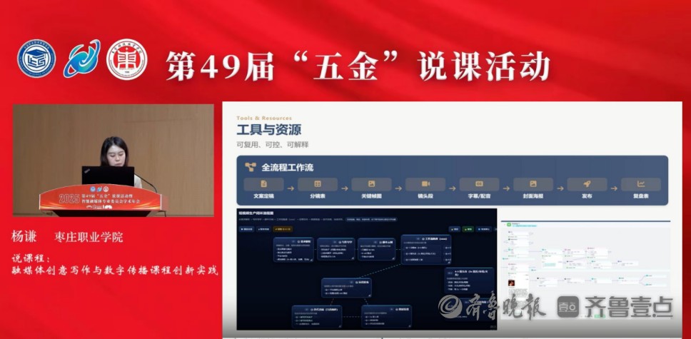 近日,中国职业技术教育学会第49届“五金”说课活动暨智能融媒体专业委员会学术年会在山东东营举办。学院教师杨谦以《融媒体创意写作与数字传播课程创新实践》为题作说课汇报,展示了学院在专业教学模式的探索与应用。