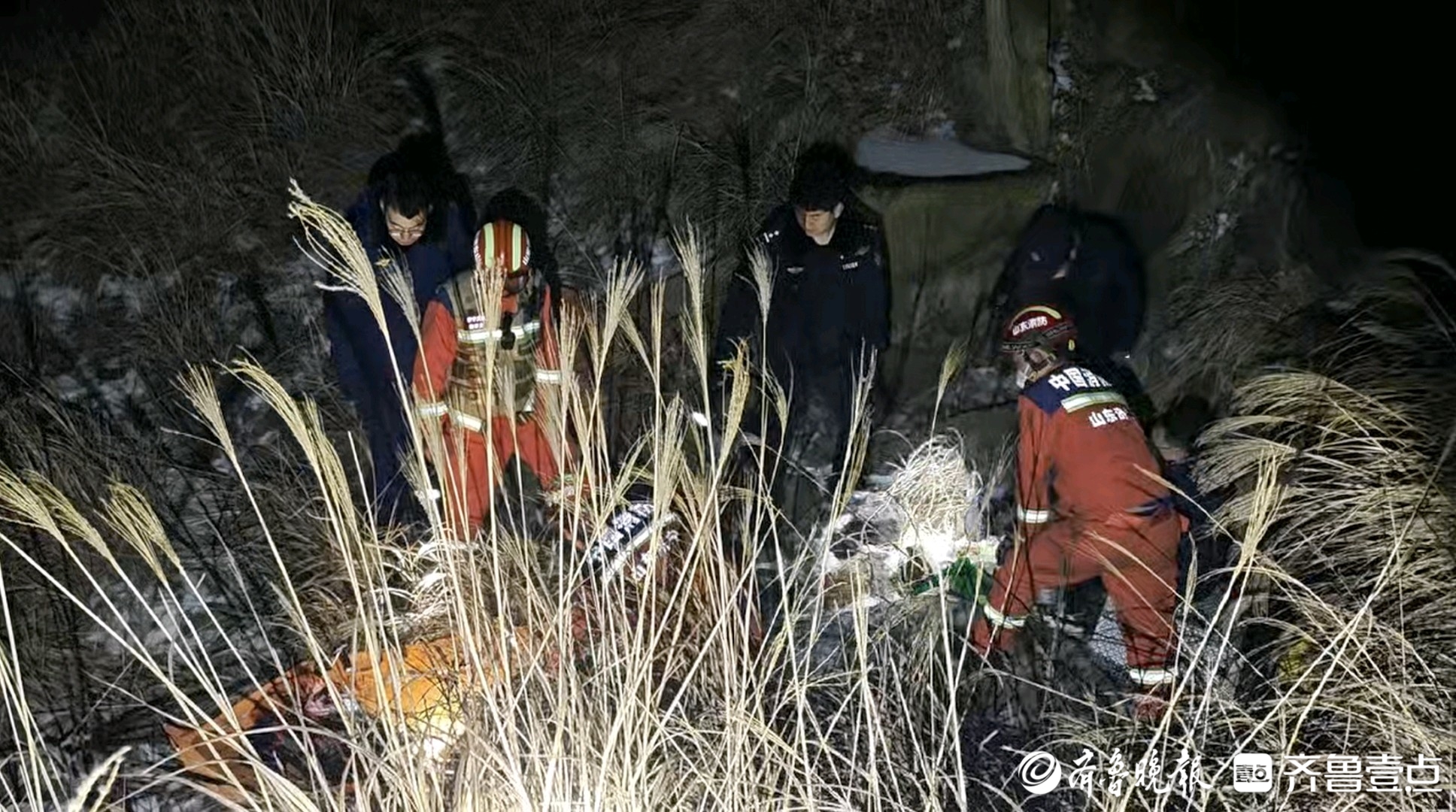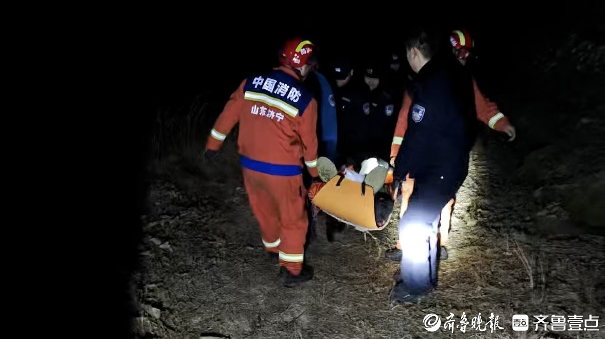 1月25日晚8点,济宁市消防救援支队接到群众报警:在邹城市张庄镇高橛子山,一家三口爬山时不慎摔伤被困。接到求助,济宁消防东城救援站立即赶赴现场。