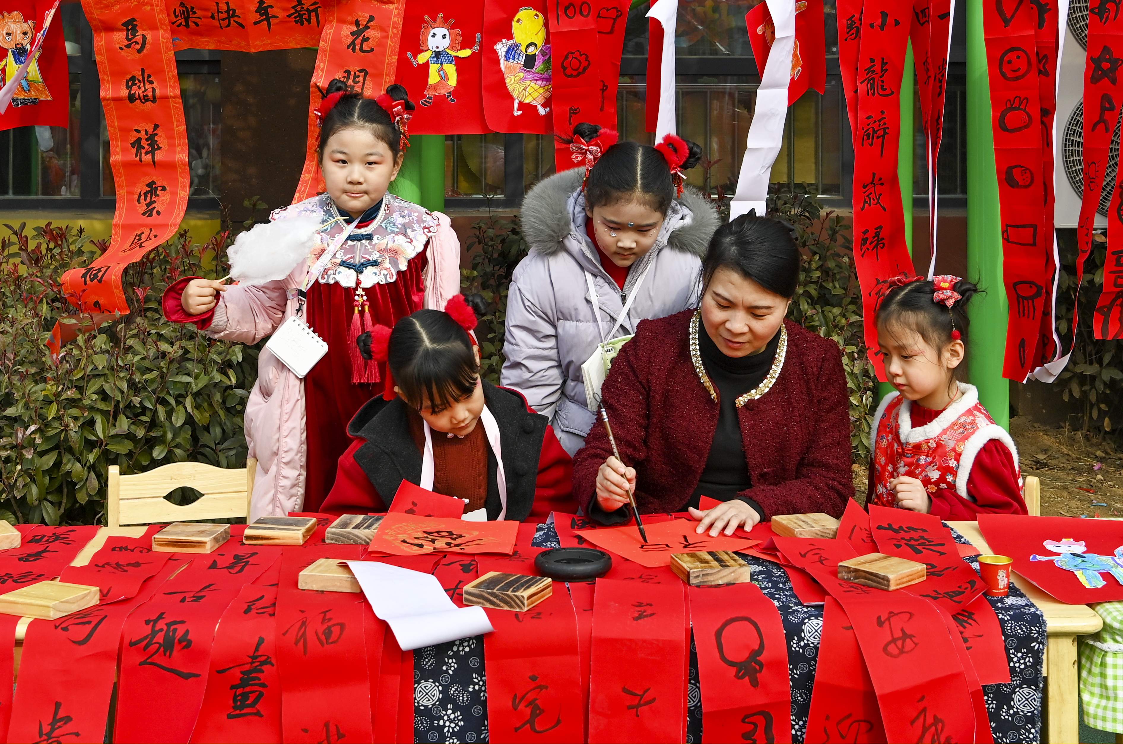 春节临近,山东省沂源县第五实验幼儿园“寻中国年、品中国味”首届“五娃闹春”年味节热闹开启。