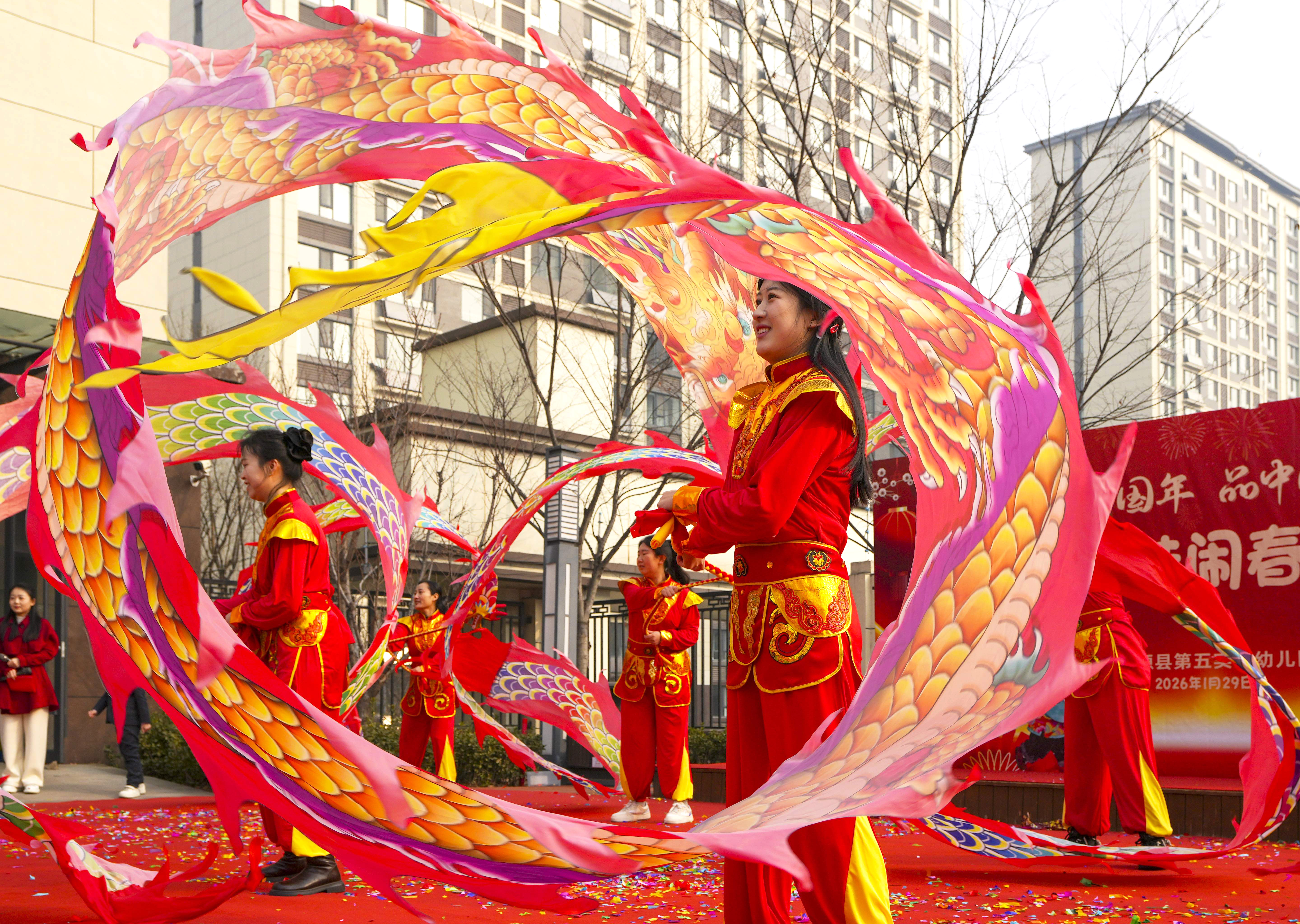园区内,张灯结彩,身着节日盛装的孩子们,在老师、家长们的陪伴下,穿梭在“年味一条街”,剪窗花、写春联,小手传承着古老技艺;做糖画,搓元宵,舌尖品味着传统香甜,舞龙队锣鼓喧天,老师们欢快地舞动“中国龙”…….