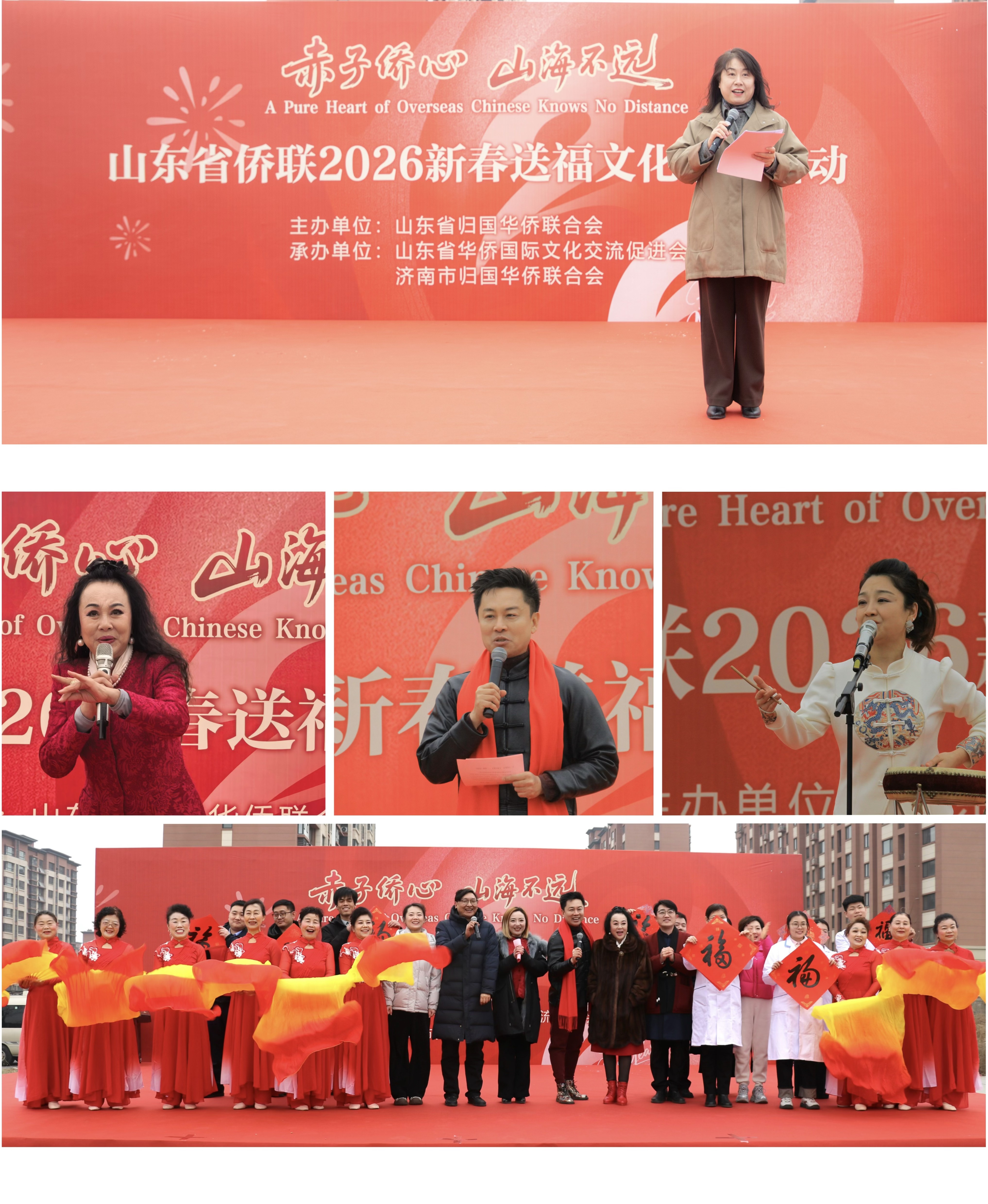 1月30日,由山东省侨联主办,山东省华侨国际文化交流促进会、济南市侨联联合承办的“赤子侨心・山海不远 —山东省侨联2026新春送福文化惠民活动”,在省侨联与济南市侨联共同的“双报到”社区——章丘区埠村新源社区圆满举行。省侨联党组成员、副主席赵雪霓,济南市侨联党组成员、副主席孙洪成,章丘区政协副主席张健,侨界艺术家、书法家、法律工作者、中医师、口腔专家及新源社区居民代表共同参加活动。