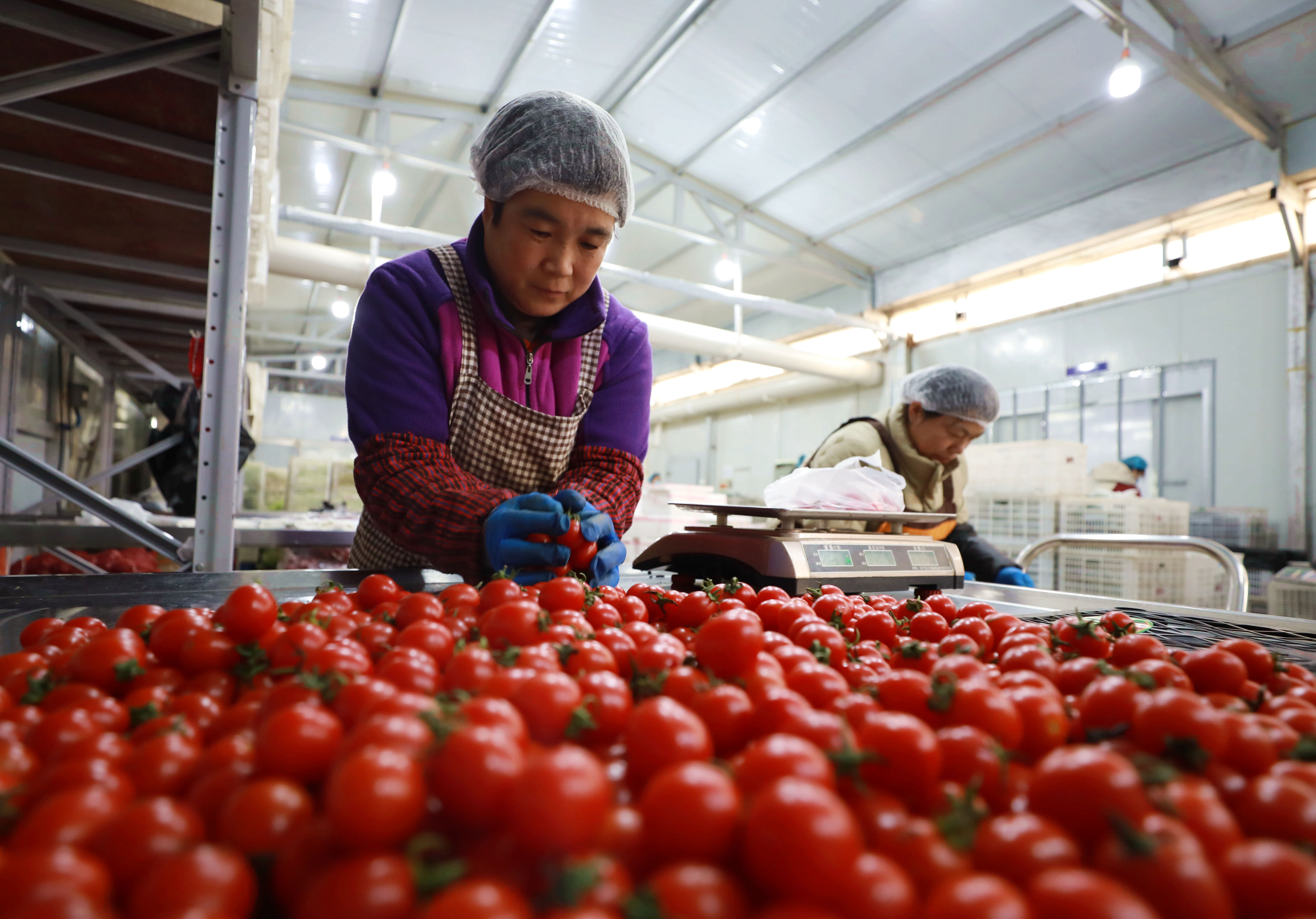固安县一家净菜加工企业,工人正在分拣小西红柿