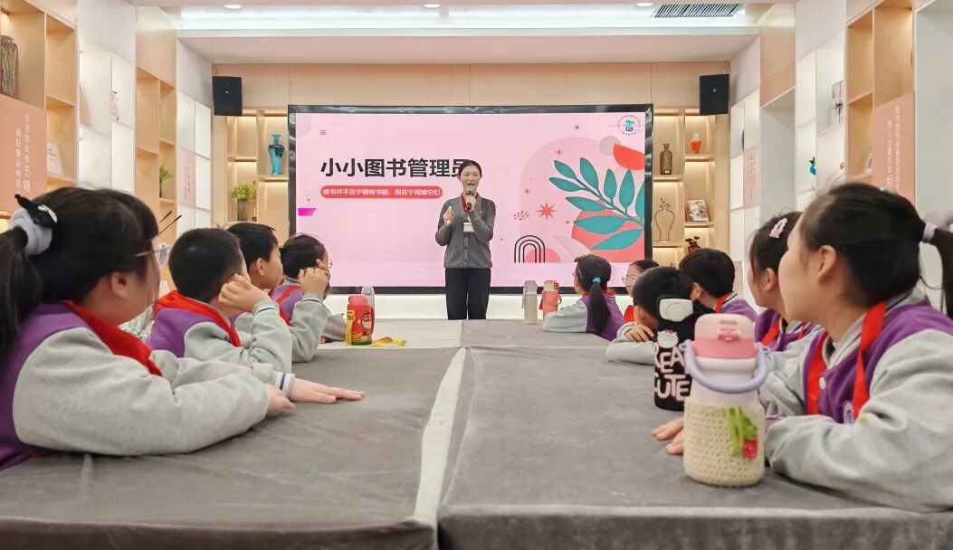 “上岗啦!”队员们佩戴专属标识,正式化身“小小图书管理员”。他们穿梭在书架之间,将散落的书籍一一归位,用学到的分类知识整理错乱的书架,还主动为前来借阅的读者指引方向。原本爱闹的孩子变得专注认真,内向的孩子也鼓起勇气提供帮助,每个身影都在岗位上发光发热。队员们在忙碌的实践中,不仅体会到了劳动的辛苦与快乐,更懂得了责任与担当的意义。
