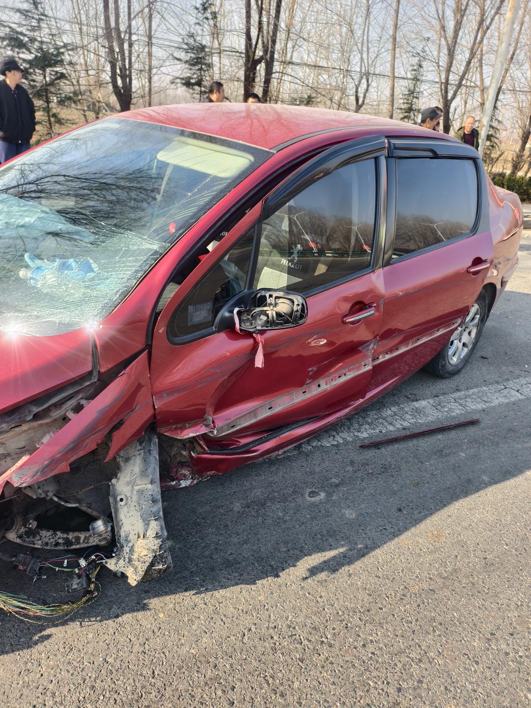 时间回到2026年1月3日中午。假期回老家看望姥姥后,青岛二中分校高三学生董耀阳由妈妈开车,前往高密北站乘坐火车回学校。12时20分左右,母子俩行至高密市姜庄镇附近的220省道上时,前面一辆红色轿车突然失控,撞向左侧护栏。因撞击力太大,红色轿车的左前轮胎几乎脱落,车子瞬间冒烟。
