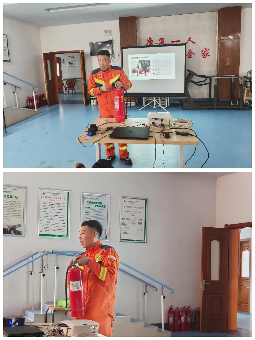 培训中,颜磊队长根据火灾隐患类型进行了预防、灭火、自救逃生等方面的知识普及,对院内现有的几种灭火器区别及适用范围、使用相关注意事项进行了详细讲解,并现场演示了灭火器的规范使用方法。