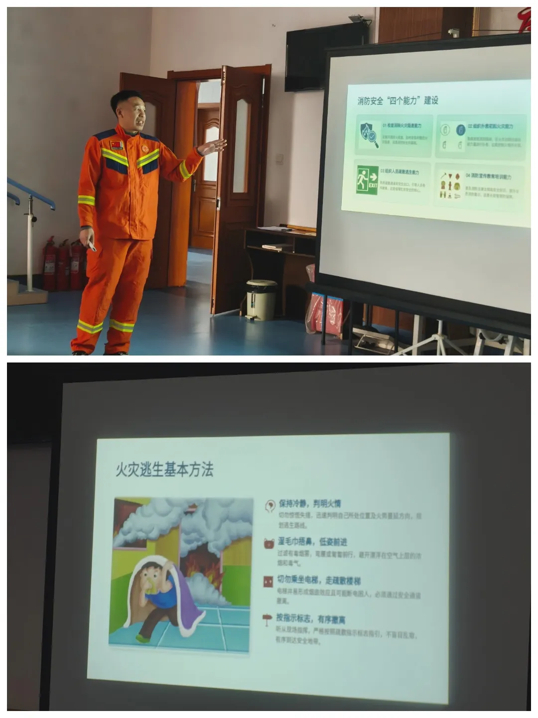 培训结束后,疏散逃生与灭火器实操演习随即开展。在教官指导下,职工们按照应急预案,引导“患者”低姿捂鼻、快速有序撤离至安全区域。