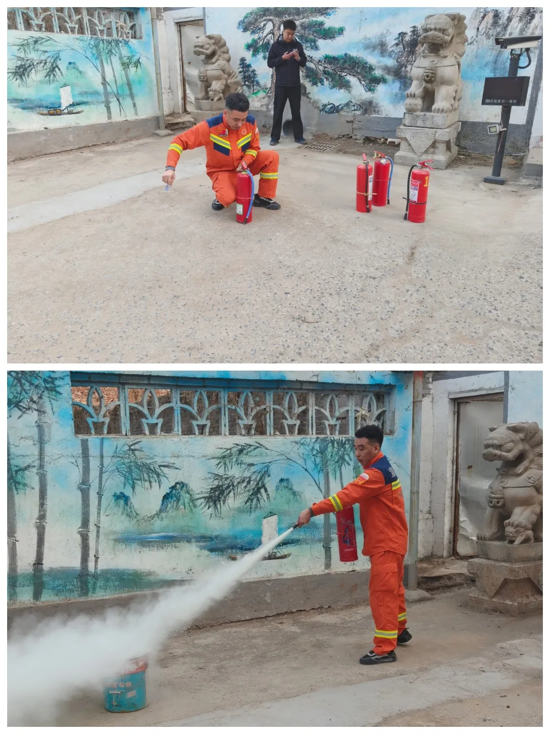 在模拟起火点扑灭演习中,大家按照所学内容,熟练掌握灭火器“提拔握压”规范,成功扑灭“初期火情”,整个过程紧张有序、协同高效。