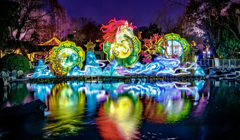 主题升级,文脉更深厚。本届灯会深度绑定马年生肖文化与济南本土元素,将文人风骨融于流光灯组,创意呈现李清照的婉约、辛弃疾的豪情、秦琼的忠义、张养浩李湘芝等文人名士的诗词意境,让传统灯艺与名士文化深度交融,展现泉城济南的独特气质与人文底蕴。