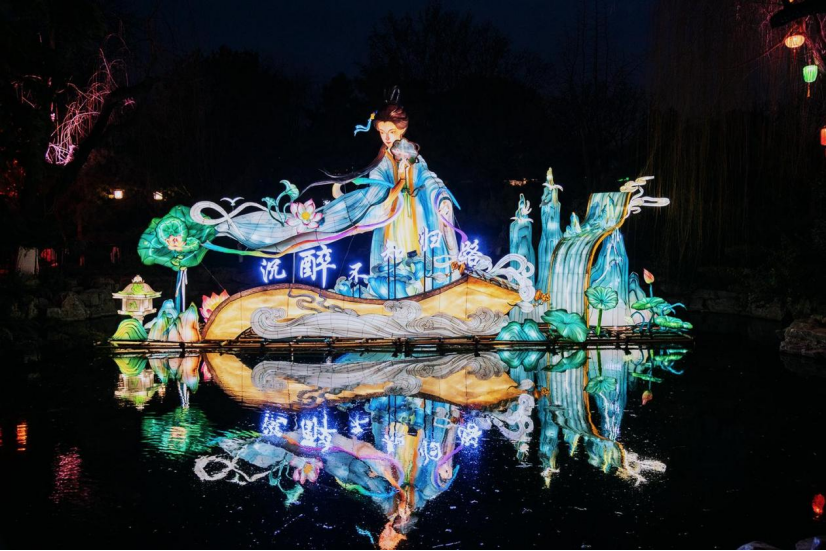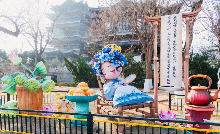 体验升级,玩法更多元。本届灯会打破传统单一观赏模式,四大园区各具特色而又主题鲜明。趵突泉景区以古韵国风的创新呈现,解锁年轻人眼中的“顶流审美”;五龙潭公园结合秦琼祈福这一传统民俗,推出“河灯祈福”特色活动,游客可将承载心愿的河灯投入潭中,寄托新春美好祝福;大明湖景区创新开发Q版“少女雨荷”系列场景,生动还原湖畔少女的鲜活日常,掀起打卡热潮;护城河则以独特的游船赏灯视角勾勒璀璨星河,形成“水上夜游+岸边漫步”的沉浸式夜游场景,带来多维感官体验。