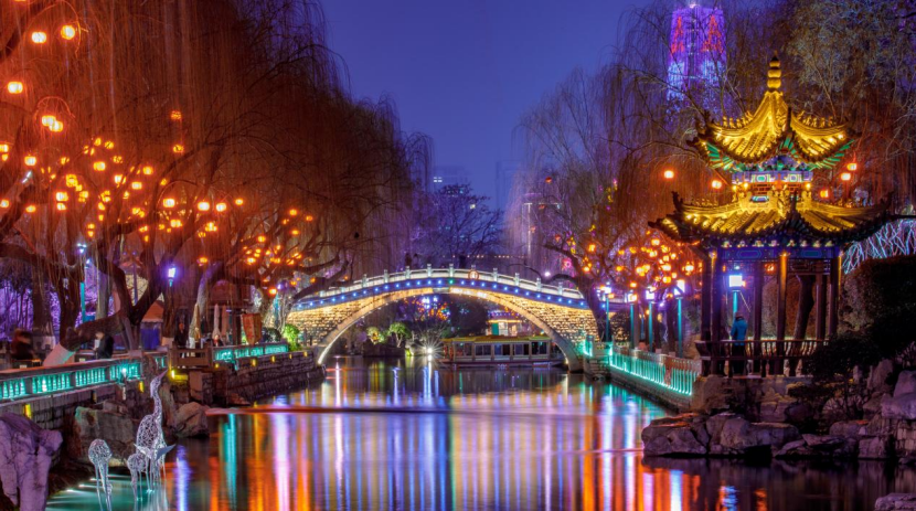济南市第45届天下第一泉迎春花灯会以“三景融河·光映泉城”为主题,以护城河为灵动纽带,串联趵突泉、五龙潭、大明湖三大核心景区,深度挖掘济南泉水文化、名士文化、非遗精髓,构建“灯与泉共生、古与今交融”的生动格局,让千年泉城在灯火流转间绽放蓬勃生机,让传统年俗在华彩蝶变中焕发无限活力。