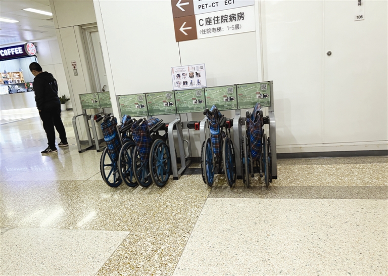 医院提供的免费轮椅数量少,满足不了患者的需求;租用共享轮椅的小程序使用步骤复杂,收费标准不一……记者近日走访本市多家医院发现,无论是免费轮椅还是共享轮椅,对有使用需求的患者,尤其是老年患者来说,存在诸多不便。