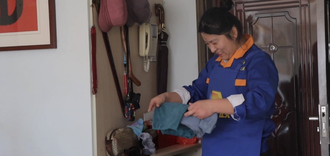在长期服务的杨女士家中,徐萍萍早已超越了单纯保洁员的身份。杨女士子女常年在外工作,独自居住,徐萍萍上门打扫卫生时,总会顺便陪她聊聊天、问问近况,有时候还会帮她代买生活用品、陪同看病买药,长久的陪伴,让两人渐渐亲如母女。杨女士也十分疼爱她,时常会给她留些水果、点心,就像对待自己的亲女儿一样。