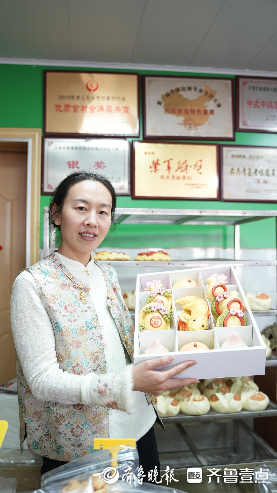 在工坊的制作间,36岁的即墨姑娘小吕正在为一条“锦鲤”剪出鱼须。手起剪刀落,一条“黄金锦鲤”已然成型。“我一直喜欢传统面食,现在看到中国的传统面食越来越受欢迎,感受到了庞大的市场,就专门来王哥庄学艺。”在小吕看来,以前做馒头可能是老一辈的事,现在越来越多的90后、00后加入其中,这门手艺一点也不“老”。