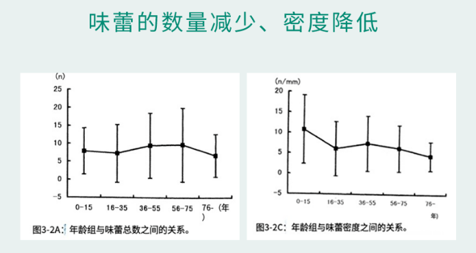 随着年龄的增长,你味蕾的更新能力会变差,唾液分泌也会跟着减少,而唾液本来是帮助溶解食物里的味道分子,促进味道分子跟味蕾结合传递味道的。而多项研究发现,“重口”很多时候就表现在吃得咸上,专业术语叫“味觉补偿”。