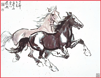 中国画《并驰》,作者尹瘦石。