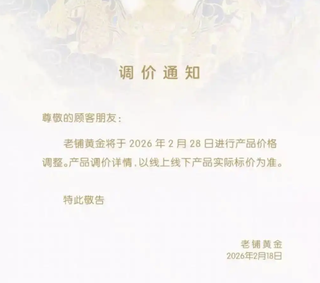 与此同时,古法黄金品牌琳朝珠宝和宝兰也已分别于1月底和2月初完成调价。