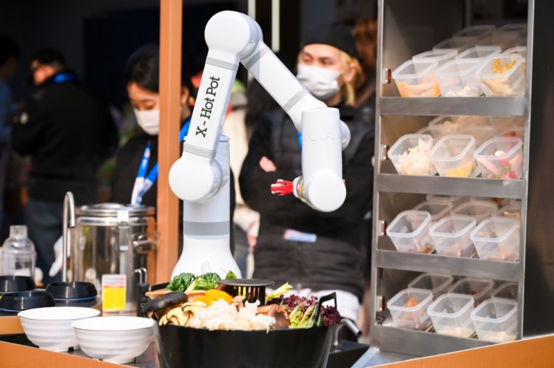 X HotPot-沸点计划将招牌产品“八秒牛肉”带到展会现场,机械臂基于高精度力控算法和3D工业视觉定位系统,实现对下锅时间与力度的毫秒级控制,确保食材在第八秒精准提离汤底。