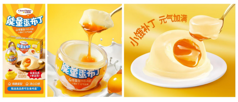 在产品创新上,巧妈妈持续突破工艺与口感边界。其中,121℃炙烧布丁搭载巧妈妈全球首创的121℃炙烧工艺,融合久鲜创新技术,在温和高温下实现鲜嫩无菌,既保留蛋奶本真风味,又维持细腻嫩滑口感。该工艺经多次调试优化,形成独特技术壁垒,让产品在美味与安全间达到优质平衡。能量蛋布丁选用高品质可生食鸡蛋,通过蛋液精准灌装、恒温慢煮定型、流心内馅注入等数十道精细工序,打造多元蛋白营养结构,加以萌趣蛋形设计,内藏盲盒玩具与趣味幸运签,兼顾美味与互动体验。