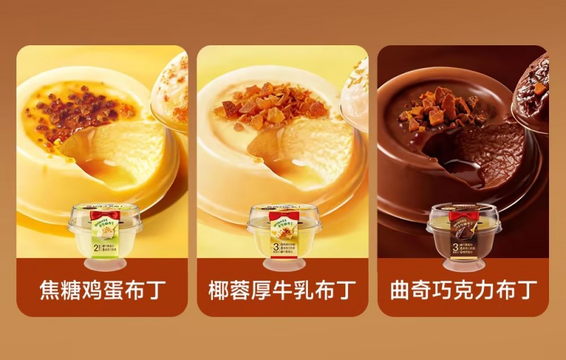 此外,品牌经典款焦糖烧鸡蛋布丁、椰蓉厚牛乳布丁、曲奇巧克力布丁等,凭借清爽口感、丰富层次,适配早餐、下午茶、休闲追剧、礼品馈赠等全场景消费。