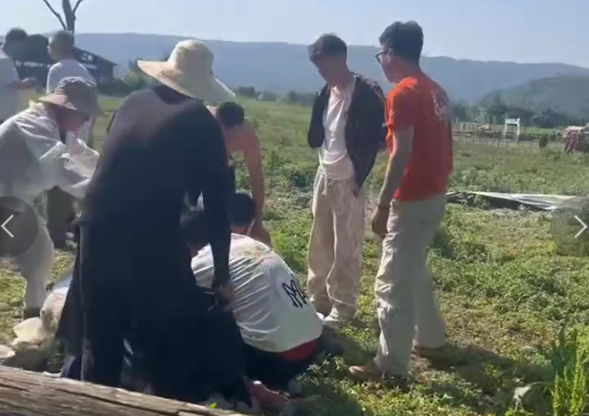 据此前报道,多位网友发布的视频显示,在一片有木头围起来的草地上,有两人躺在地上,有人员正在紧急处置,附近有游客在围观,也有游客在提供帮助。